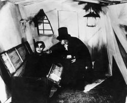 На почетку ХХ века Немачка је кинематографски заостајала за САД, Француском, Данском, Енглеском. Међутим средином друге деценије ХХ века формира се немачки експресионизам, а родоначелник тог правца је филм Кабинет доктора Калигарија (Das Cabinet des Dr. Caligari) снимљен 1920. године. Редитељ је био Роберт Вине, а писац сценарија Карл Мајер. Експресионизам на филму инсистира на подсвести, мрачним деловима душе и понашања а радња филма је смештена у искривљен и неприродан декор. То је свет каквим га виде нервно поремећене особе, па је камера имала веома важну улогу, те су у остварењу дела битни сви учесници – сценаристи, сниматељи и редитељ. После неколико година овај правац прелази у нешто умеренији облик звани kammerspielfilm или камерни филм, чији оснивач и носилац жанра јесте Карл Мајер, сценариста. Камерни филм је задржао морбидне психолошке теме али их је стављао у реалистични контекст.